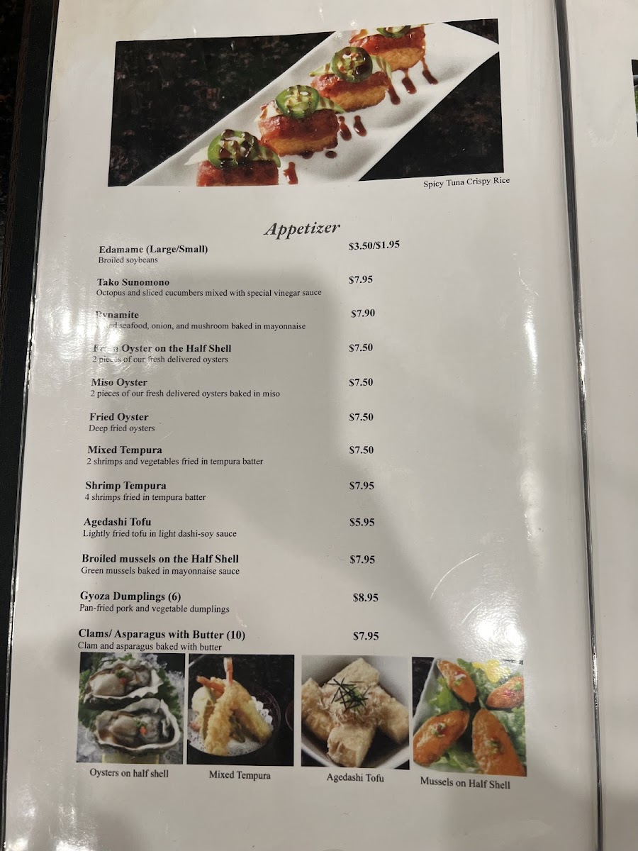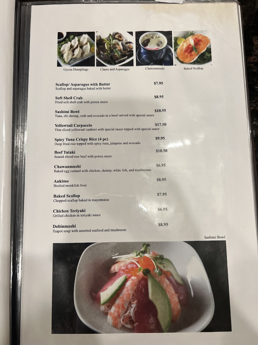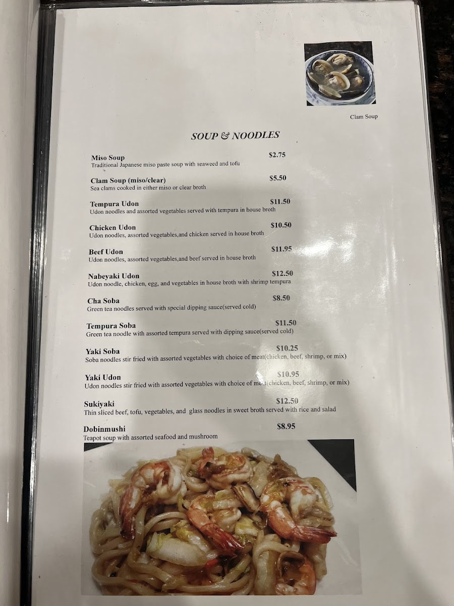 But it’s not just the main dishes that shine—appetizers like the Edamame, simply broiled soybeans for $4.25, and the Mixed Tempura, featuring a delightful assortment of vegetables and shrimp, highlight the focus on freshness and quality. Every bite sings, and the genuine flavors are enough to draw you back for more.