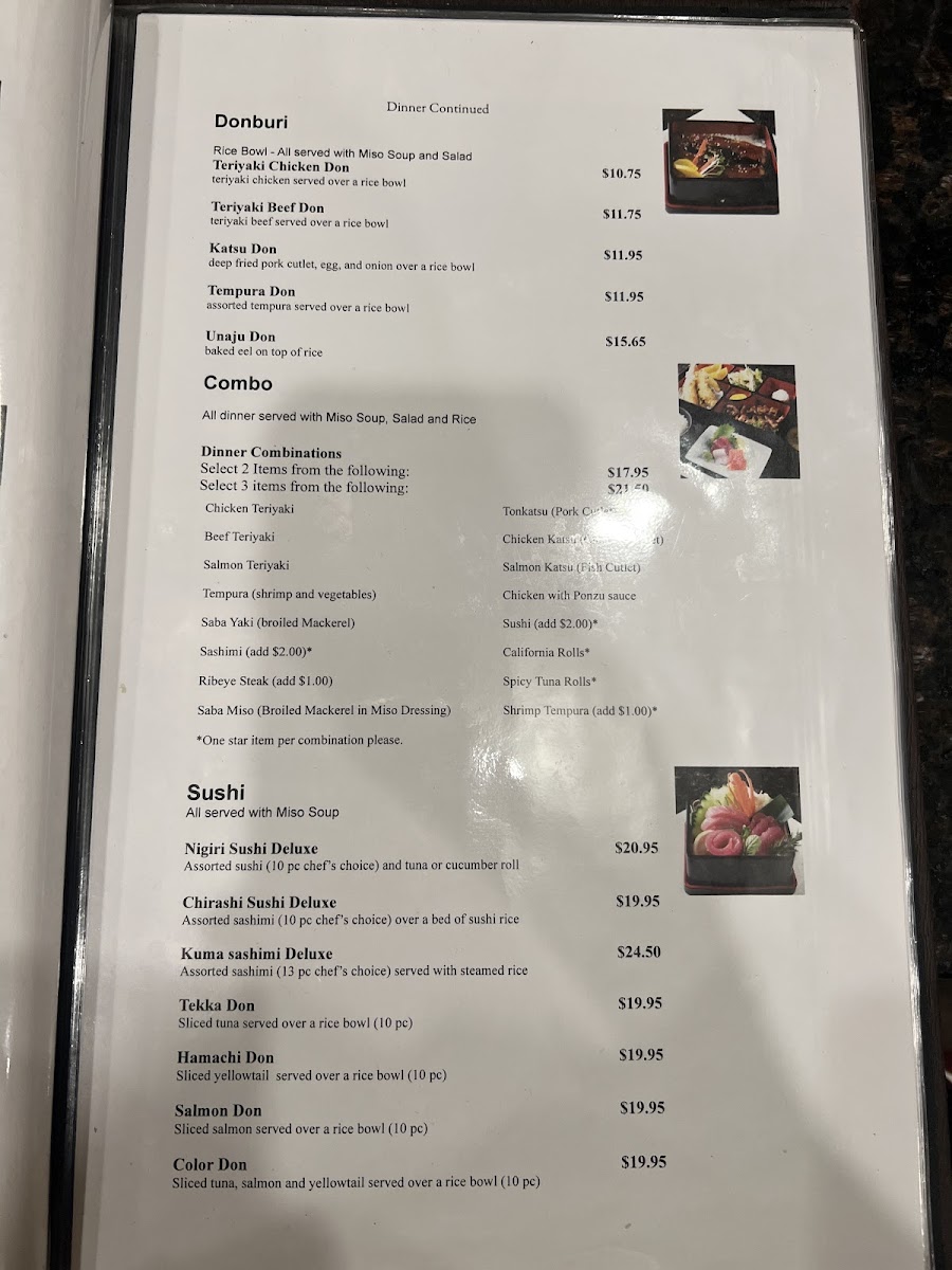 As the day transitions into evening and appetites grow, the Dinner Combo beckons, allowing you to choose up to two delectable items for $25.50. Each dish is lovingly prepared to transport your taste buds straight to Japan. Do not miss the rich flavors of the Teriyaki Chicken Don Dinner, where tender chicken glazed with a savory-sweet sauce sits atop a fluffy rice bowl for just $17.50. For those with a craving for crunch, the Katsu Don Dinner offers a deep-fried pork cutlet, egg, and onion served over rice that’s simply impossible to resist for $19.25.